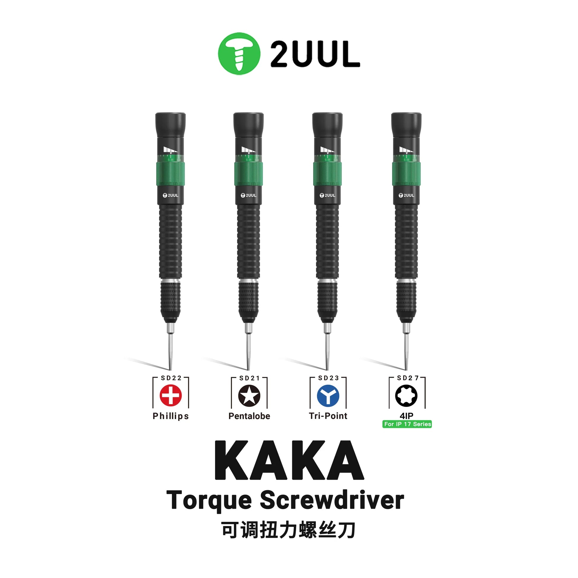 2UUL KAKA Adjustable Torque Mini Screwdriver with Replaceable Magnetic Screwdriver Bits for Cell Phone iPhone iPad Tablet and Electronics Repair. 2UUL SD24 4-in-1 Screwdriver Bit Storage Set (Converx Cross 2.5mm, Tri-point 0.6mm, Philips 1.2/1.5mm, Pentalobe 0.8mm) for KAKA Mini Screwdriver.