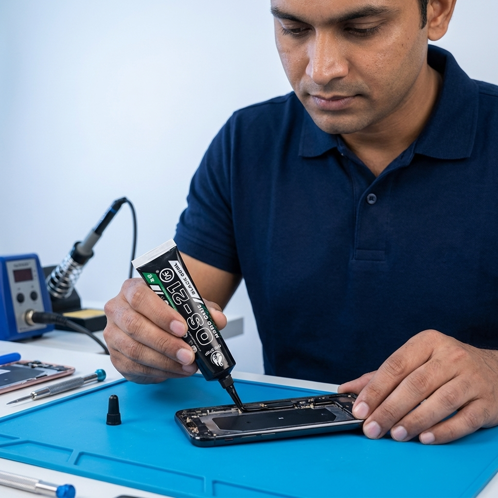 The OS-21 Black Glue is specially formulated to deliver high bonding strength while maintaining flexibility, which helps prevent cracking or weakening over time. Its smooth application and quick curing performance allow technicians and repair professionals to achieve precise and clean bonding results.